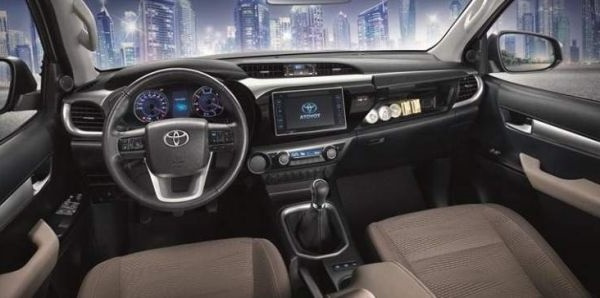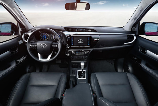 W nowym Hiluxie oferowane są trzy czarne tapicerki do wyboru. W podstawowej wersji wyposażenia zastosowano wytrzymałą, mocną tkaninę, dostosowaną do użytkowników biznesowych. W wersji klasy średniej użyto wysokiej jakości trwałej tkaniny o miękkiej fakturze z myślą o klientach korzystających z samochodu zarówno do celów biznesowych, jak i rekreacyjnych. Samochód w najwyższej wersji wyposażenia, stworzonej na użytek rekreacyjny, fotele mają obicia ze skóry.