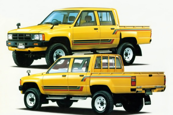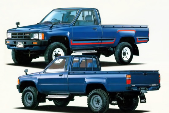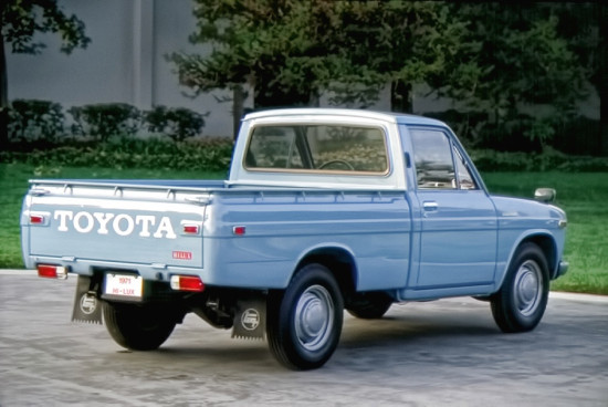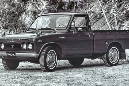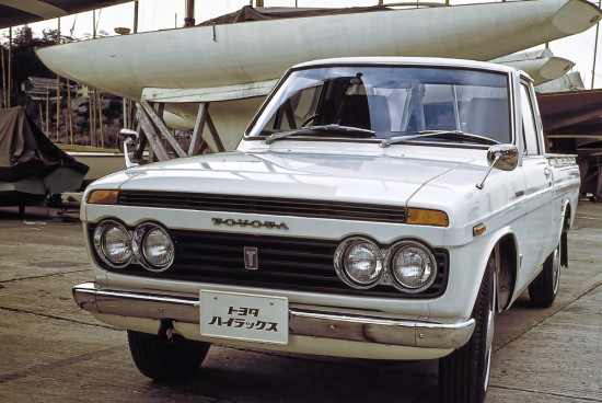 Owocem tych prac była zaprezentowana w 1968 roku nowa półciężarówka, która otrzymała rynkową nazwę Hilux. Skrót utworzony od angielskiego określenia highly-luxurious, niosący znaczenie „wysoce luksusowy”, był wówczas, powiedzmy to sobie otwarcie, bardzo umowny i odnosił się raczej jako porównanie do protoplastów tego auta. Model ten wszedł do produkcji w marcu 1968 roku i na początku dostępny był tylko z krótkim rozstawem osi oraz silnikiem o pojemności 1,5 l. Przyglądając się autu nie trudno zauważyć, że wygląd zewnętrzny, z przodem zaopatrzonym w podwójne reflektory i ozdobionym poziomym chromowanym pasem, bardzo nawiązuje do pick-upów Chevroleta z początku lat sześćdziesiątych.