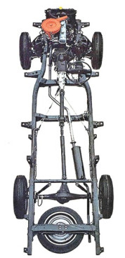 Ten mały tylnonapędowy samochód z pojedynczą kabiną posadowiono na ramie i zaopatrzono w sztywny tylny most na resorach piórowych oraz w niezależne zawieszenie przednie.