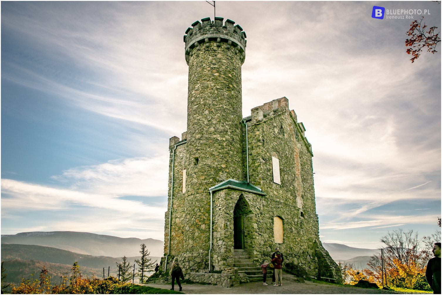I powoli zbliżamy się do końca trasy. Jeszcze poszukamy przygody gdzieś w bocznych drogach rozpiętych między Miłkowem a Zalewem Sosnówka. Mimo iż szlak ma długość niespełna 50 km, jednak jest tak nasycony atrakcjami, że zapewne gdzieś w okolicach Zalewu zastanie Was koniec dnia. Warto wówczas udać się na „Złoty Widok” i zerknąć jeszcze ostatni raz na uroki pobliskich szczytów. Bardziej wytrwali zapewne wespną się jeszcze do Zamku Księcia Henryka. Budynek ten, powstały z inicjatywy Henryka von Reuss około 1806 roku, początkowo był schronem myśliwskim i wieżą widokową. W roku 1842 przebudowano go do współczesnego kształtu.