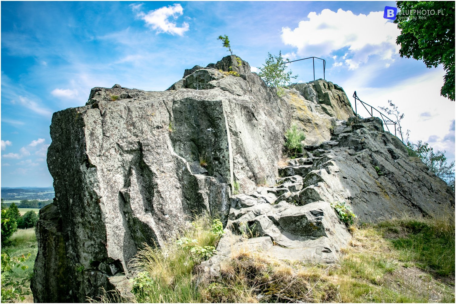 Jadąc dalej wytyczoną trasą znajdziecie pozostałości po wygasłym wulkanie, którego aktywność jest szacowana na 20 - 30 milionów lat wstecz. Obecnie to niewielki, 12 metrowy, bazaltowy stożek, na którym wyraźnie odznacza się pozostałość po wulkanicznym kominie. Jego szczyt wznosi się na wysokość 476 m n.p.m. i jest wartym odwiedzenia punktem widokowym. Roztacza się stąd piękna panorama Karkonoszy, Gór Kaczawskich i Izerskich oraz piękno najbliższego regionu (Przedgórze Rębiszowskie, Wzniesienie Radoniowskie i Kotlinę Mirska).