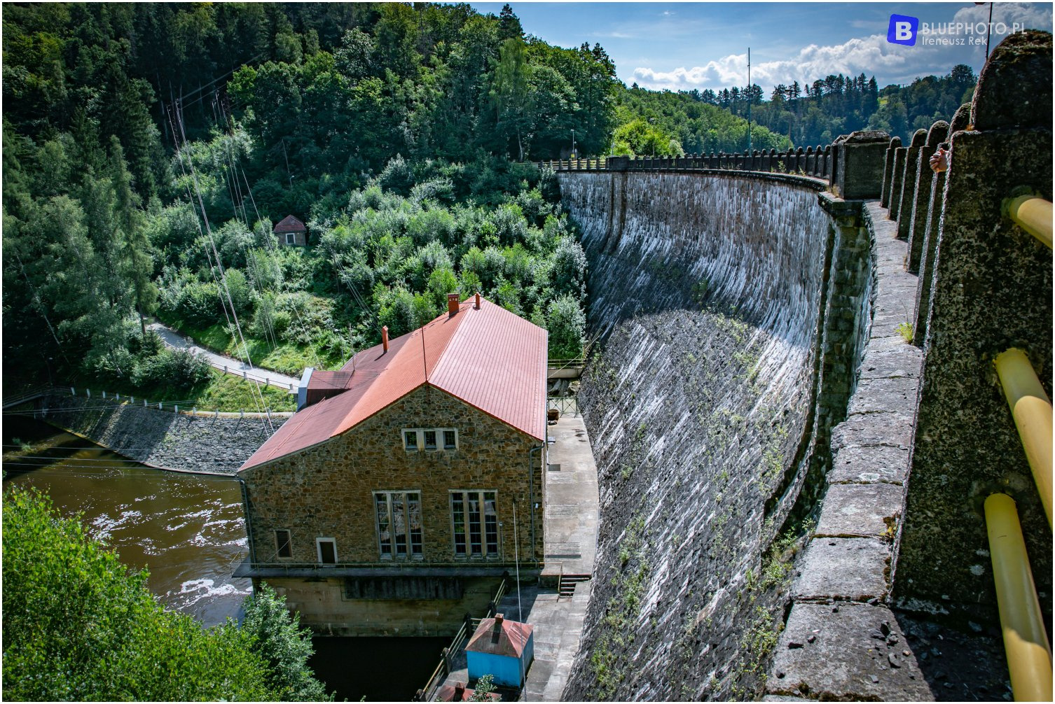 Malowniczo położona przegroda na rzece Kwisie została wybudowana według projektu radcy budowlanego Curta Bachmanna z Jeleniej Góry w latach 1919-24. Budowa zbiornika była rozwinięciem planu ochrony przeciwpowodziowej Pogórza Sudeckiego i była czwartą tego rodzaju inwestycją na Dolnym Śląsku, po niżej położonych: Leśnej (1901 - 7907), Pilchowicach na Bobrze (1904 -1912) i Lubachowie na Bystrzycy (1912- 1917). Powstała tama ma 36 m wysokości z czego 27,5 m nad poziomem terenu. Długość korony to 168 m. W wyniku budowy zapory powstało jezioro o pojemności 10,5 mln m i powierzchni 125 ha. W ubiegłym roku ruch pojazdów po tamie był dozwolony, po jej przejechaniu droga prowadzi przez wąski tunel do ośrodka wypoczynkowego „Złoty Sen”.
