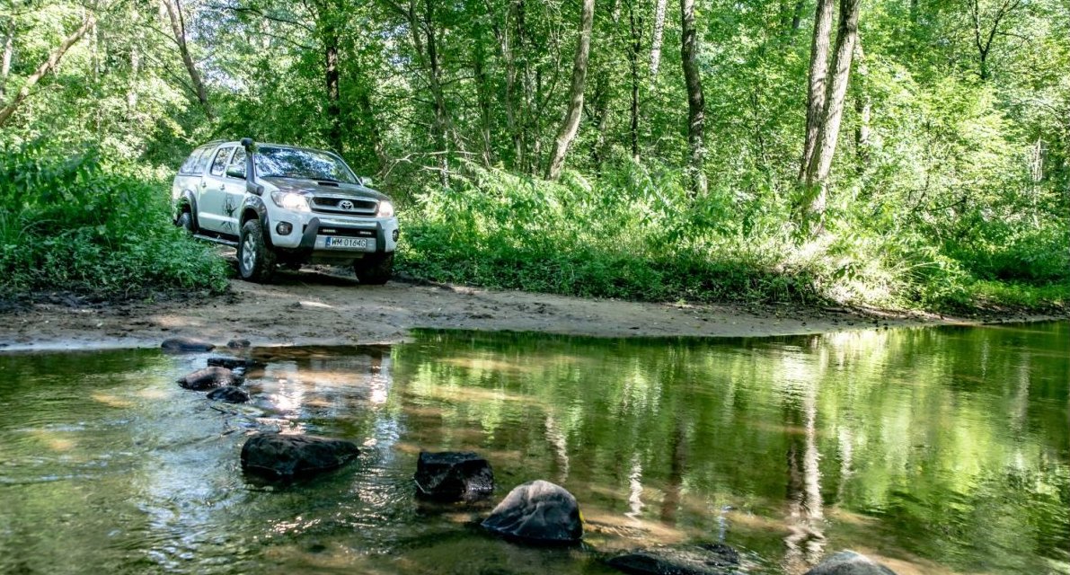 Dalsza trasa to sporo szutrów oraz asfalty, którymi dotrzemy do Nowego Kiełbowa, gdzie wiaduktem pokonać można trasę S7. Uwaga: droga przez las na trasie miejscami zarośnięta i może rysować lakier. Bardzo wymagający choć mało offroadowy jest fragment pomiędzy Grodziskiem a Adaminowem. Piaszczysta, leśna droga mocno obrośnięta jest tu akacjami. Planując podróż tędy trzeba liczyć się z rysami lub zabrać ostra maczetę lub karczownik. Ja używam narzędzia produkowanego przez firme Fiskars, każdemu mogę je polecić.
